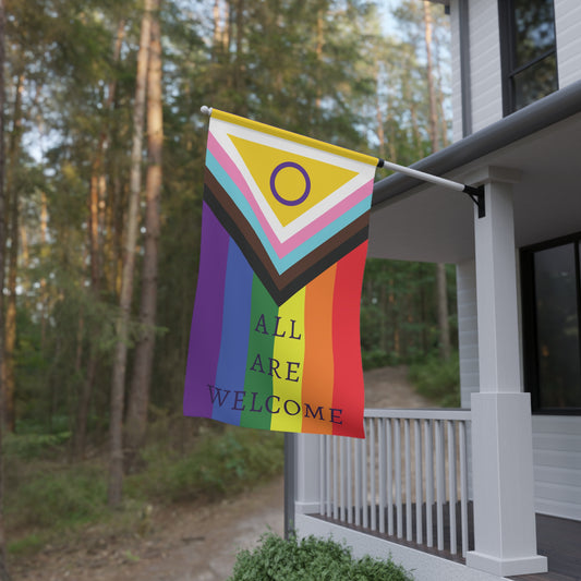 "All Are Welcome" Vertical PRIDE Progress Flag (Free Shipping!)